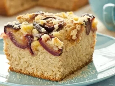 5. Put all the ingredients for the crumble into a bowl and rub with your fingers until they are well combined. Sprinkle over the plums. Bake for about 45 minutes. Check with a skewer or toothpick to see if the cake is ready. If you prick the cake with the toothpick and it is dry, not sticky, then the cake is ready to serve, if not, bake for a little bit longer then check again. Let the cake cool and serve.