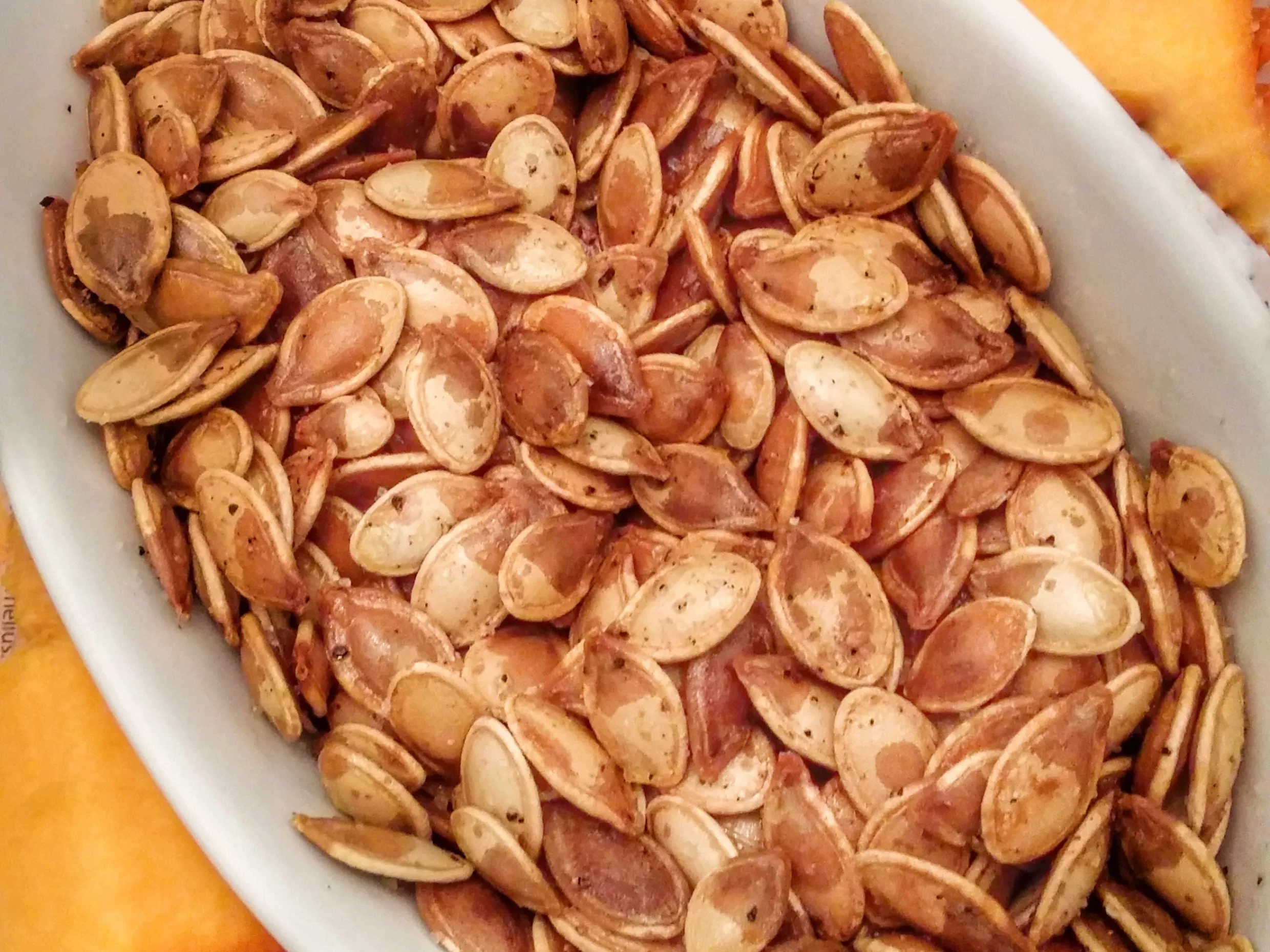 - Separate the seeds from the stringy pump, rinse the seeds in a colander under cold water, then shake dry. Don’t blot with paper towels; the seeds will stick.