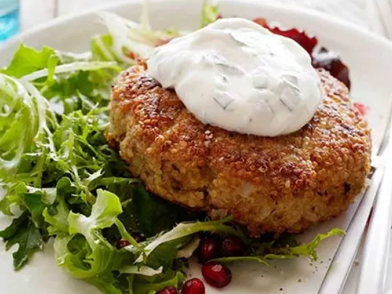 For the tacos and toppings: Warm the tortillas and fill each with some of the quinoa filling. Top with the shaved cabbage, tomatillo salsa, coriander and a squeeze of lime.