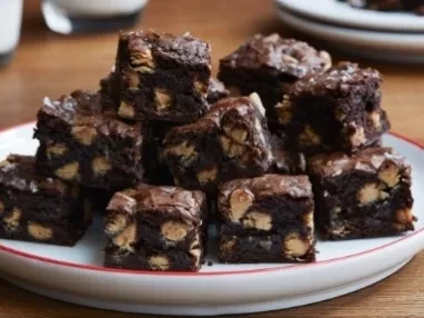 - In a large microwave-safe bowl, melt the chocolate chips over a double boiler or in the microwave in 15-second increments (stirring with a rubber spatula between every increment). Drizzle the melted chocolate over the brownies, then top with the edible glitter.