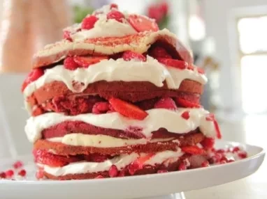 8. Spoon with cream and top with berries; add the next layer and top with more cream and berries. Then add the last layer of the cake with the frosting top.