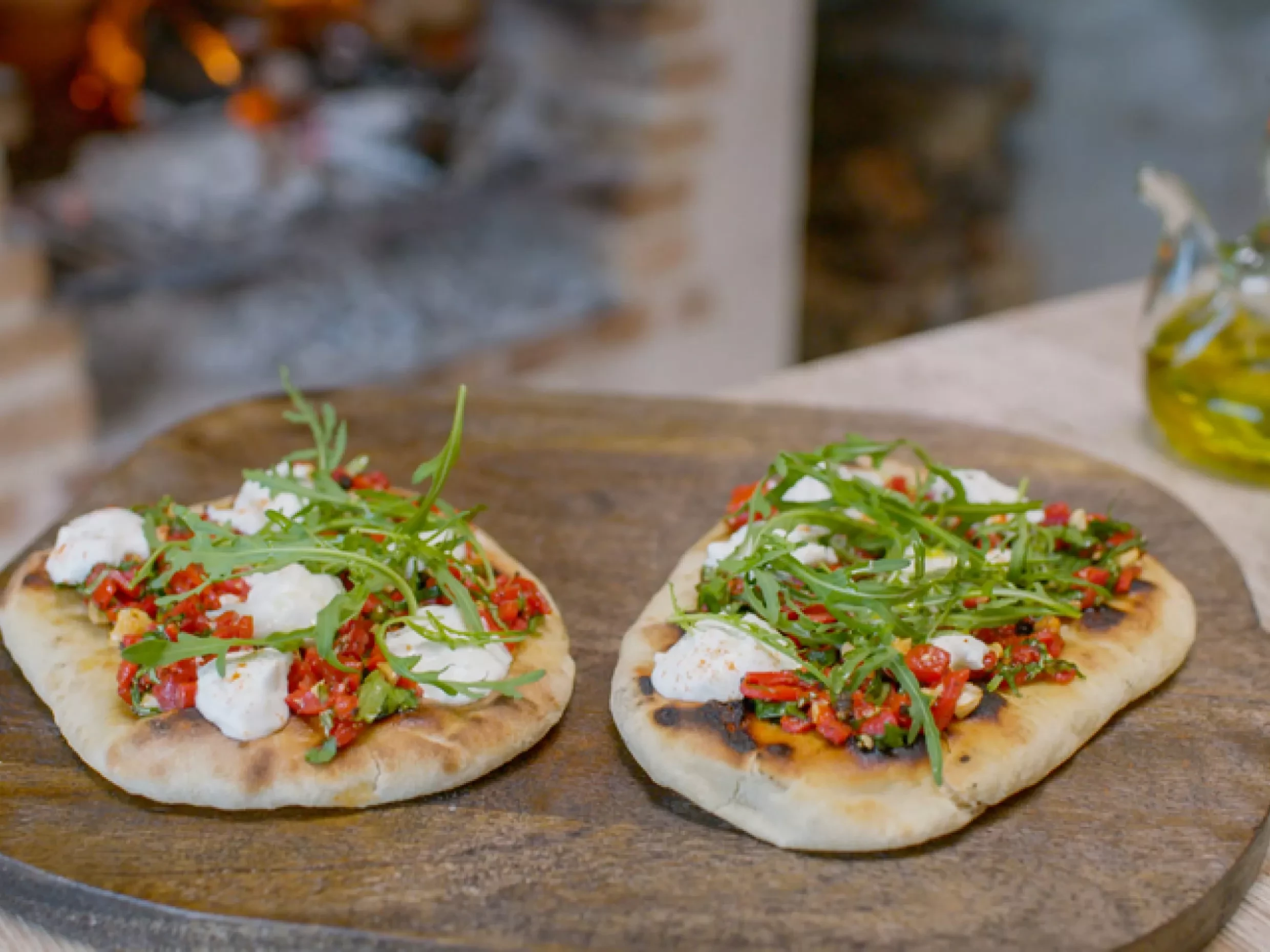 - Meanwhile, mix the maple syrup in a small saucepot with the thyme, rosemary, garlic and jalapeño. Place over medium-high heat and bring to a simmer. Cook, allowing the mixture to darken in color and reduce slightly, 4 to 5 minutes. Remove from the heat and stir in the butter, then set aside.