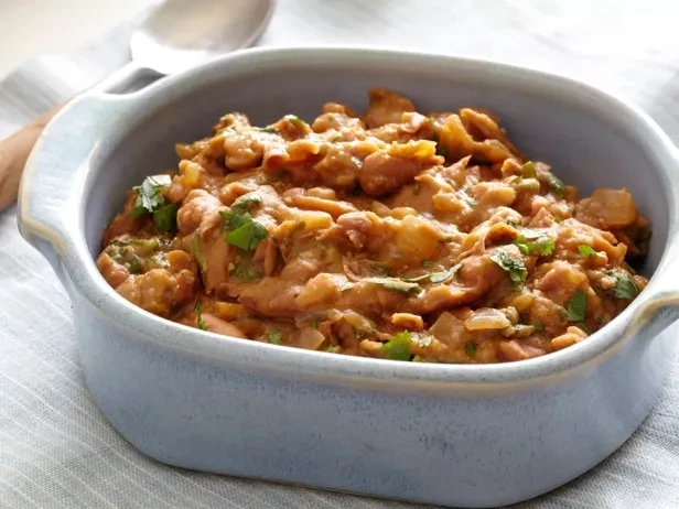 Heat the oil in a large skillet over medium heat. Add the onion and cook until tender, about 3 minutes. Stir in the garlic and chili powder and cook for 1 minute more. Stir in the beans and chicken broth and cook until the beans are warmed through, about 5 minutes. Mash the beans coarsely with the back of a wooden spoon, adding more chicken broth to moisten, if needed. Season with salt and pepper, to taste. Stir in the cilantro.