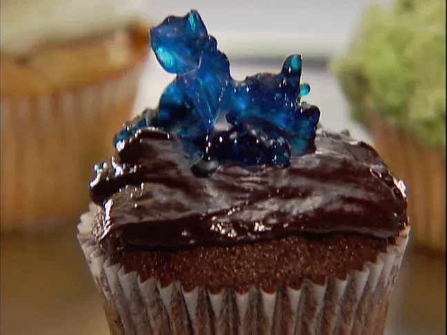 1) Fill with caramel cream center and top with ganache icing and the prepared blue rock sugar.
