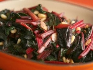 Sauteed Swiss Chard with Red Onion and Serrano Chile Vinegar