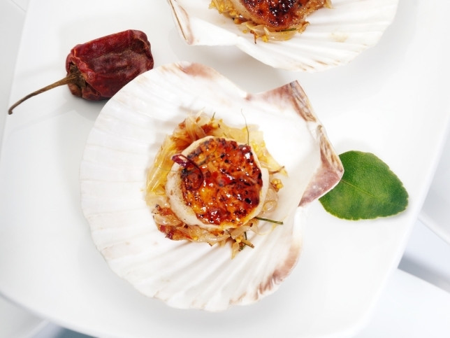 Citrus flavours infuse fresh, meaty scallops with flavours of the East.