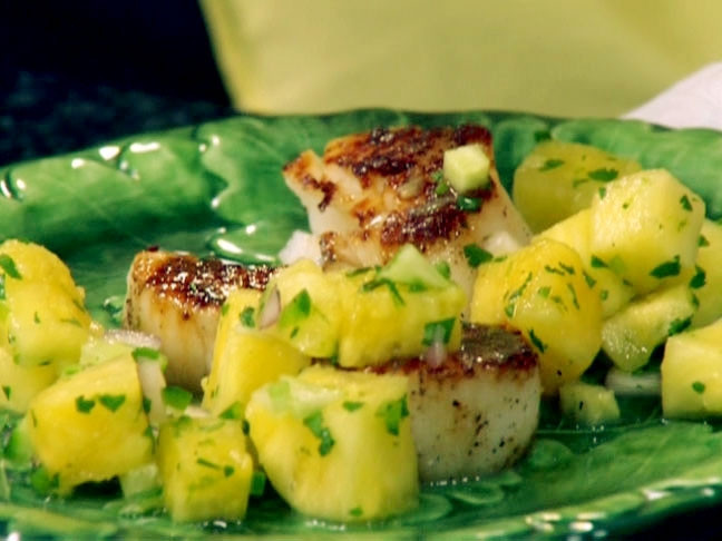 Seared scallops with pineapple-cucumber salsa