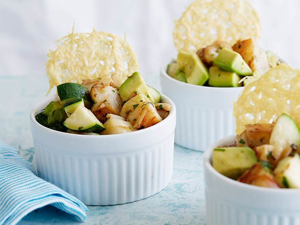 Using a slotted spoon, spoon the salad into 8 small ramekins. Garnish with frico chips and serve.