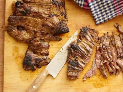 Slice the skirt steak into bite size pieces, perfect for entertaining.