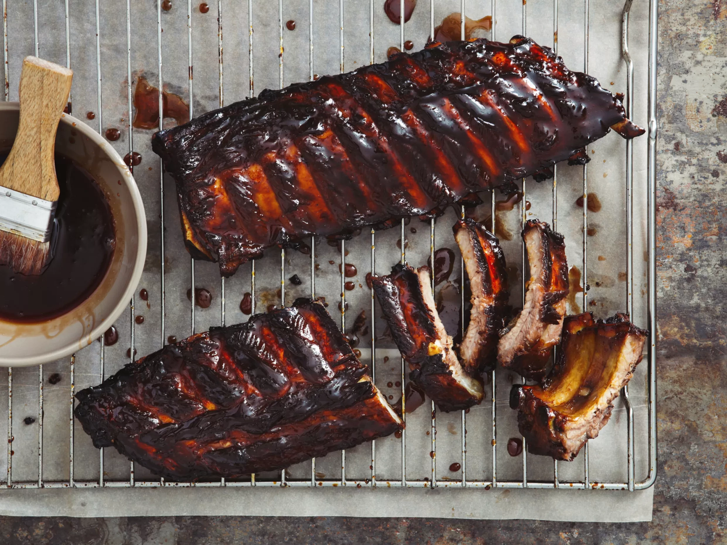 And just when you think it can’t get better, these scrummy smoked barbecue ribs are smothered in a homemade BBQ sauce made with tomato ketchup, Dijon mustard, ancho chilli, Worcestershire sauce, chipotle chillies, and dark brown sugar. A spoonful of honey and treacle brings that irresistible sticky glaze that clings to every delicious rib.