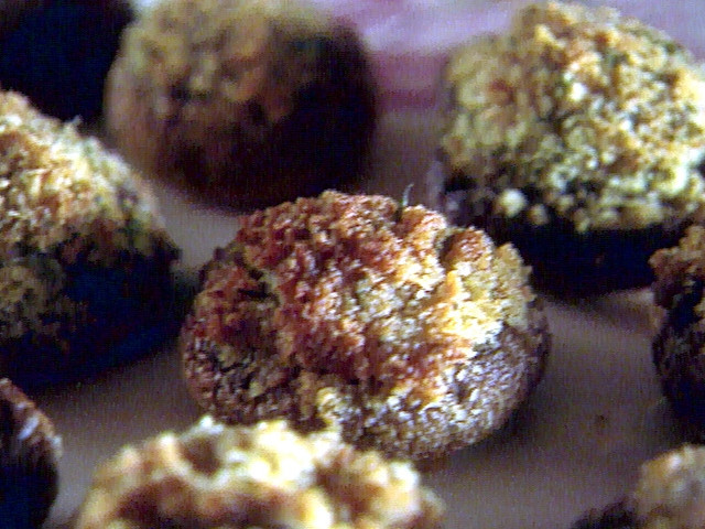 3) Divide the stuffing among the baked mushroom caps without filling them too tightly. Top each stuffed mushroom with some spring onion, chives and grated Parmesan and grill for 2 to 3 minutes until the cheese is bubbly and the stuffing is heated through.