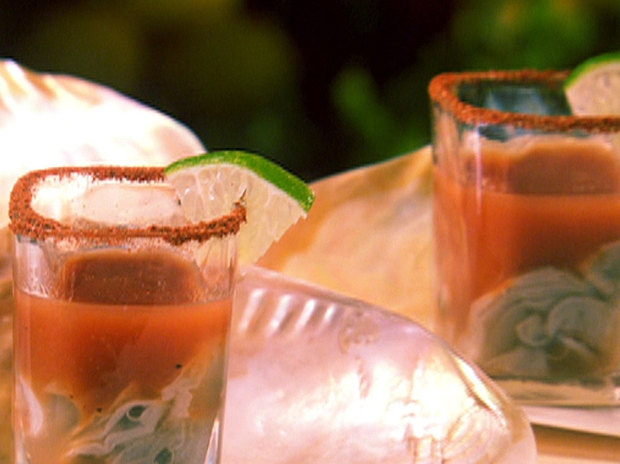 Pour vodka in a square shot glass or a molded ice glass just until it covers the bottom. Add 1 oyster to the glass and top off with spicy Bloody Mary mix. Garnish with lime.