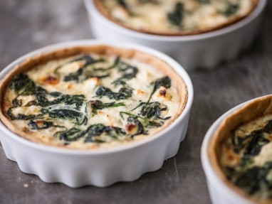 Crack the eggs into a bowl and pour in the Carnation® Evaporated Milk then whisk together. Crumble the feta into the liquid mixture and add the spinach and onions. Mix well and pour into the pastry.