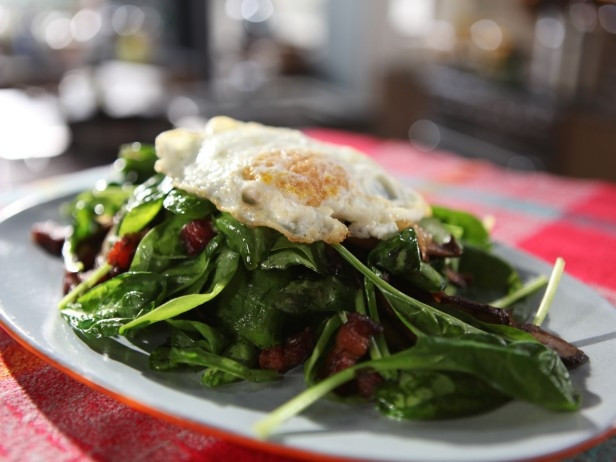 Spinach Salad with Fried Egg, Bacon and Mushrooms
