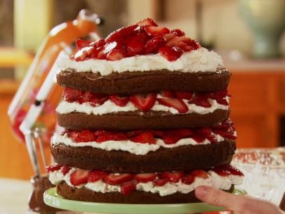 3. Spread the top of each cake with some whipped cream and strawberries and layer. Don't assemble more than an hour before serving.
