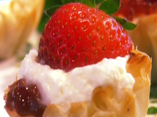 Place about 1/2-teaspoon strawberry preserves in bottom of each tart shell; set aside.