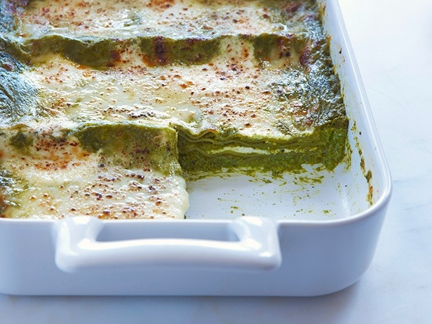 Cover with foil and bake until the noodles are tender when tested with a paring knife, about 30 minutes. Remove the foil and continue to bake until the cheeses are golden in spots, about 10 minutes more. Let the lasagne stand 15 minutes before serving.