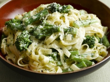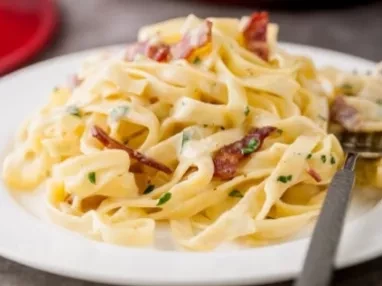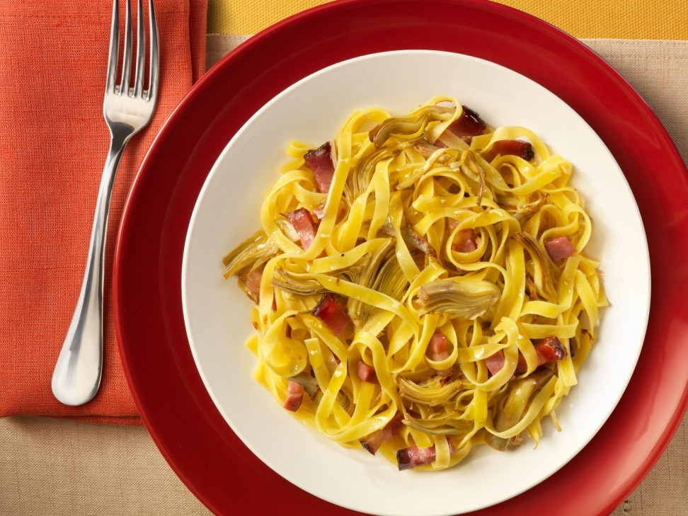 Tagliatelle with Crispy Bacon, Goat's Cheese and Artichokes