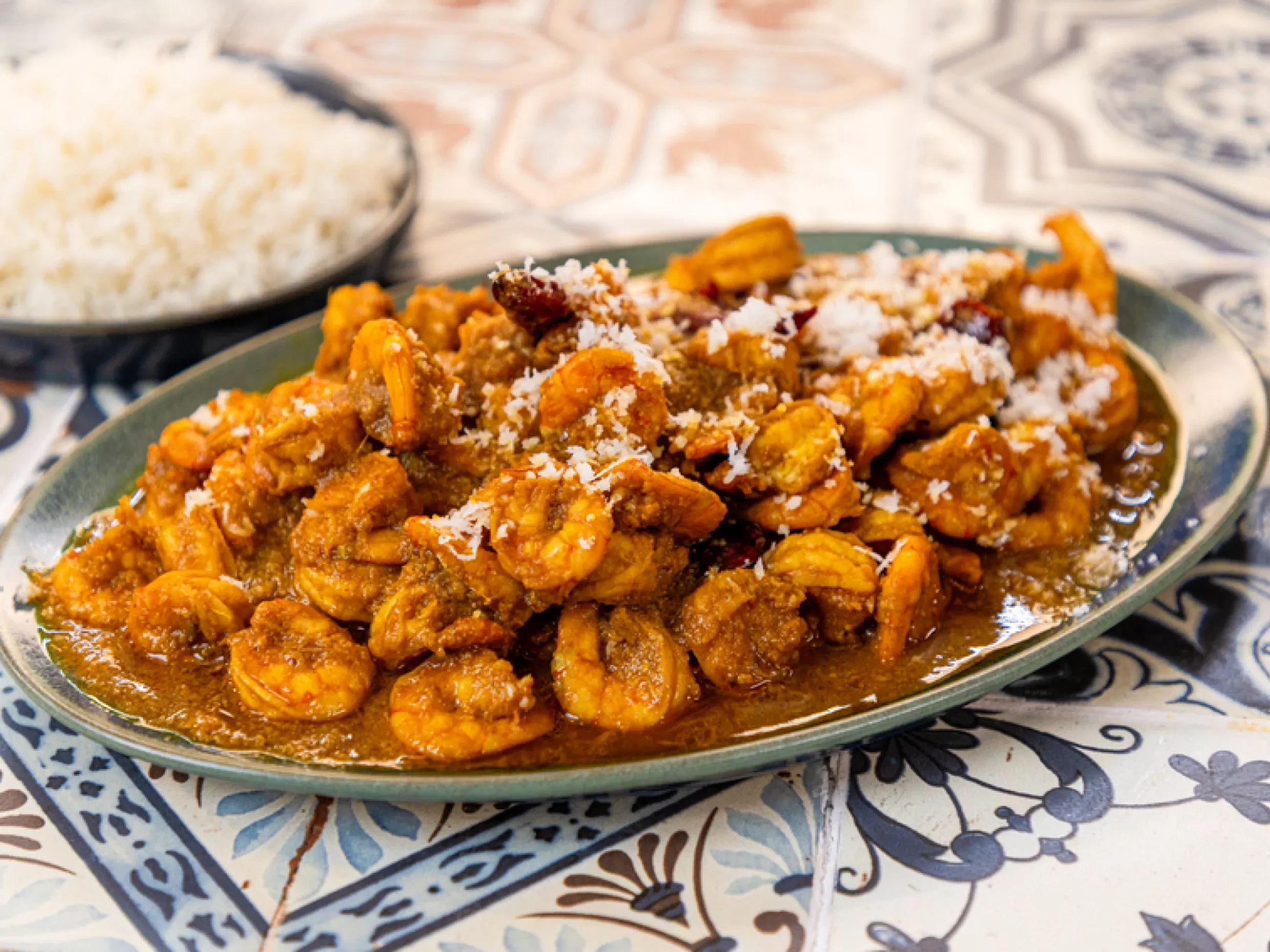 This dish needs to be made with raw shelled prawns or shrimp. Asma usually makes this dish using tiger prawns, but you can use any kind of prawn or shrimp. Whatever size you choose, be mindful that you do not overcook them. Prawns or shrimp will continue to cook in their residual heat, so do not cook them until they are done all the way through. Take them off the heat when they are three- quarters done and stir to finish the cooking. This way, they will stay succulent. This is a tangy, spicy dish that is ideally served with rice. Avoid using ready-made tamarind concentrate for this dish. Most South and East Asian grocery stores will have dried tamarind pulp. If you must use concentrate from a jar, add it sparingly and taste before adding more.