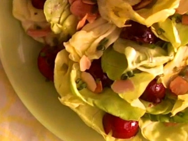 Tender Greens with Marinated Sweet Cherries in Almond Vinaigrette
