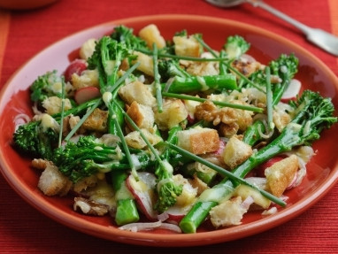Tenderstem Broccoli with Shallot Vinaigrette and Croutons