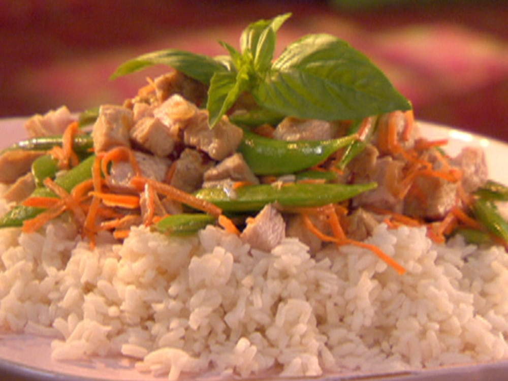1) Heat oil in a large skillet over medium-high heat. Add onion and garlic and cook for 3 minutes, until soft. Add snap peas and carrots and cook for 2 minutes. Add turkey and cook for 1 minute, until golden brown on all sides.
