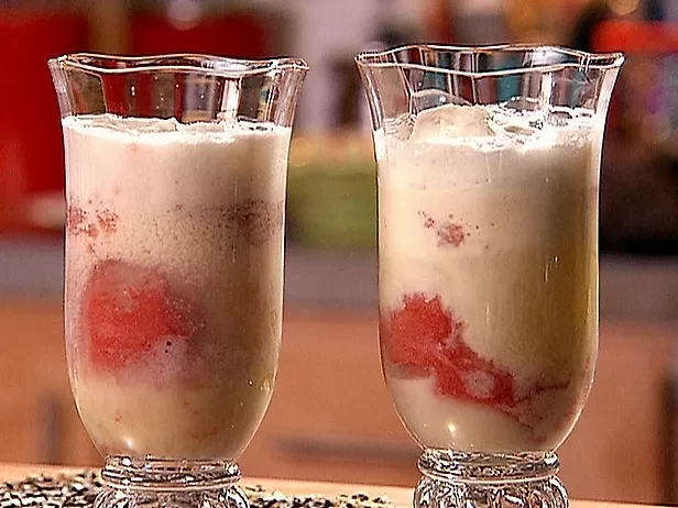 2) Pour this medley into two tall fluted glasses. Fill the rest of each glass with Prosecco. Add a touch of grenadine, stir gently. Garnish with a maraschino cherry.