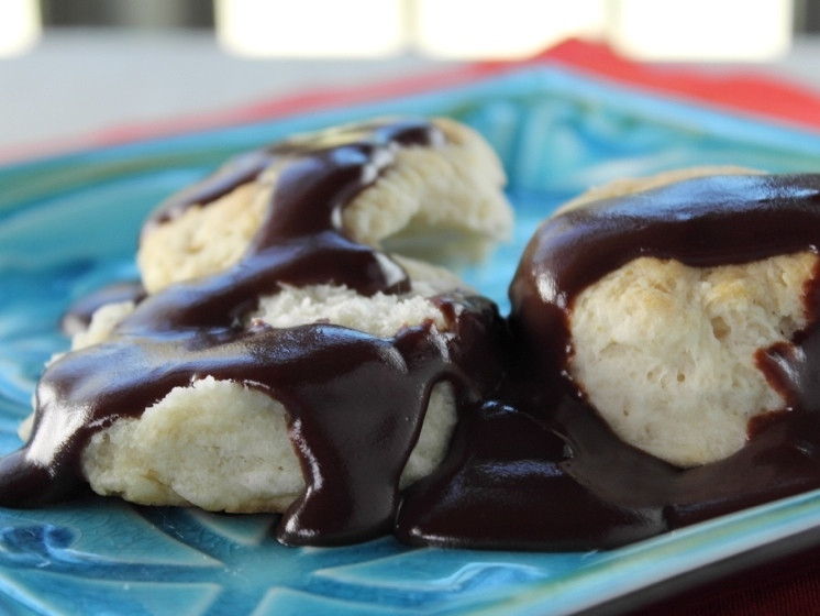 Mix the sugar, cocoa powder and flour together until there are no lumps. Add the milk and stir to combine. Melt the butter in large sauté pan. Add the flour mixture and cook on medium heat, stirring continually until it thickens. Serve over hot buttered biscuits or even ice cream.