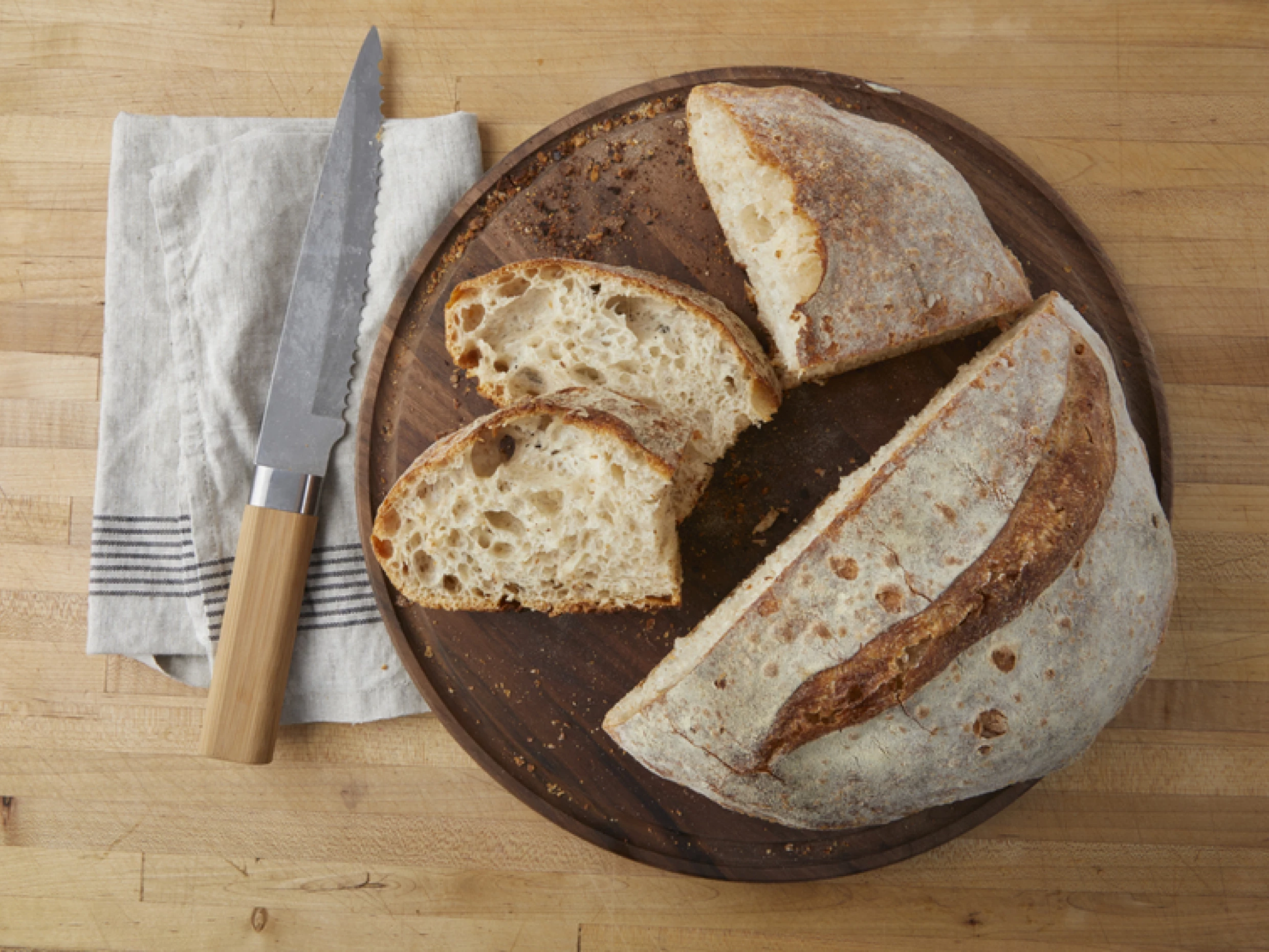 2) Cut the sourdough bread into thick rustic slices and drizzle both sides with plenty of olive oil. Put on the griddle and pressing down gently so they pick up nice even marks.