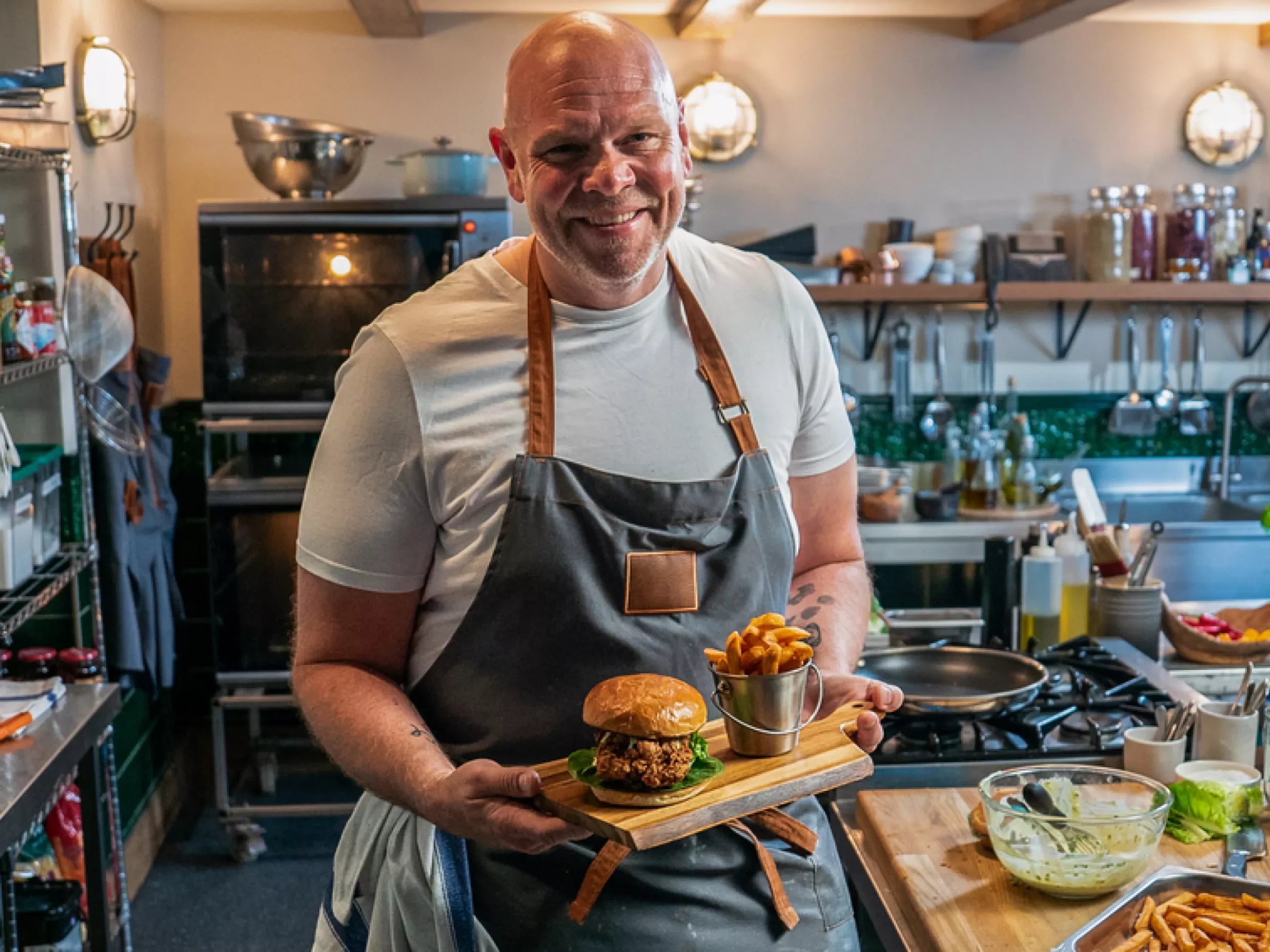 Fried buttermilk chicken makes for classic basket pub food, so why not use the concept in a burger? Here Tom briefly marinates succulent chicken thighs in a Cajun-flavoured buttermilk then coats and fries them to crispy perfection. Accompanied by a blue cheese mayo, these burgers are lush!