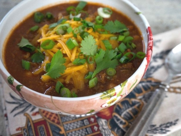 2. Add the poblano chilli, cumin, garlic and 1 tablespoon salt and cook for 1 minute, stirring. Add the tomatoes, beer and chicken stock and bring to a boil. Reduce the heat and simmer. Add the chickpeas and courgette and stir well. Simmer, uncovered, until the chili begins to darken and thicken slightly, about 1 hour 30 minutes, stirring occasionally throughout to keep it from sticking to the bottom of the pot.