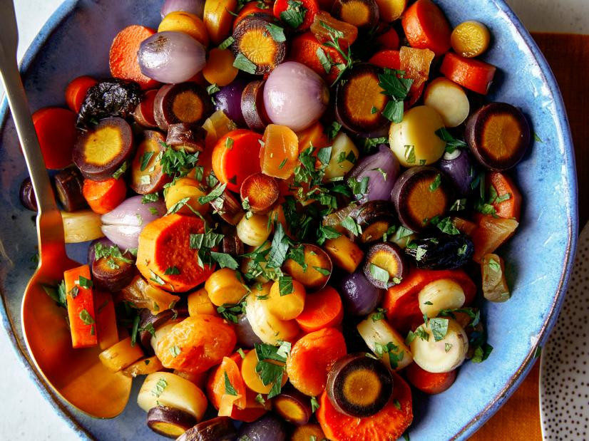 If you want to keep the meal kosher and are serving this dish with meat, use vegan butter substitute. Unpeeled carrots will hold together better than peeled during braising. Smaller sweet potatoes will match the size of your carrots for a more even cooking.