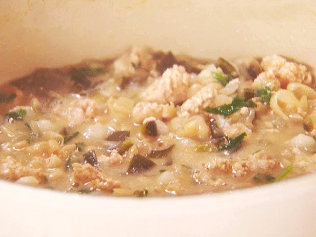 2) Add the turkey mince and cook, breaking up the meat with a spoon, until the meat is no longer pink, about 2 minutes. Add the white beans, stock and oregano. Cook, partially covered, stirring occasionally, for 25 minutes.
