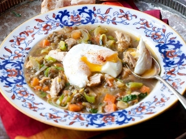 Winter Golden Turkey, Vegetable and Lentil Broth with Poached Egg