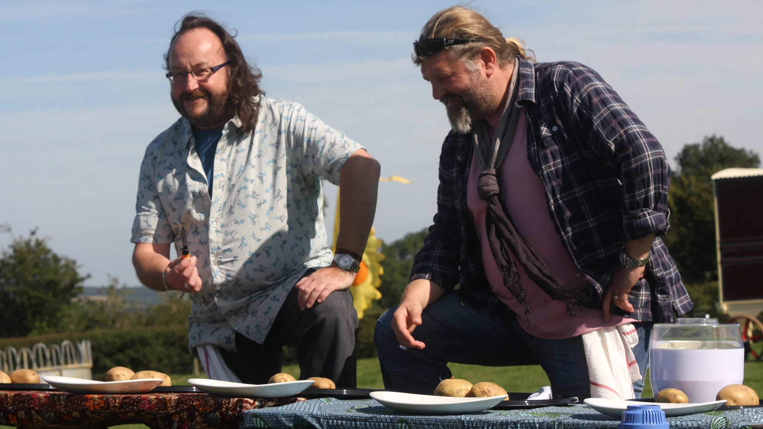 Dave and Si sample delicious home-cooked comfort food in northern England. Recipes include meat and potato pie, curry, and ginger sponge with custard.