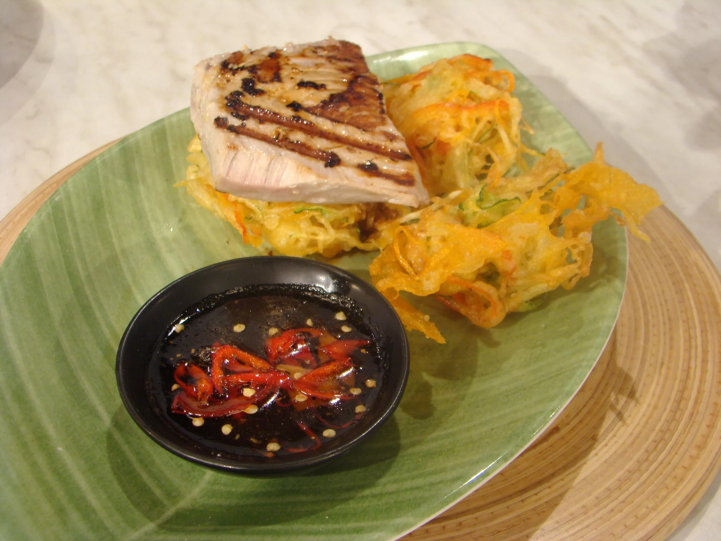 "label": "Asian Glazed Tuna with Vegetable Tempura",