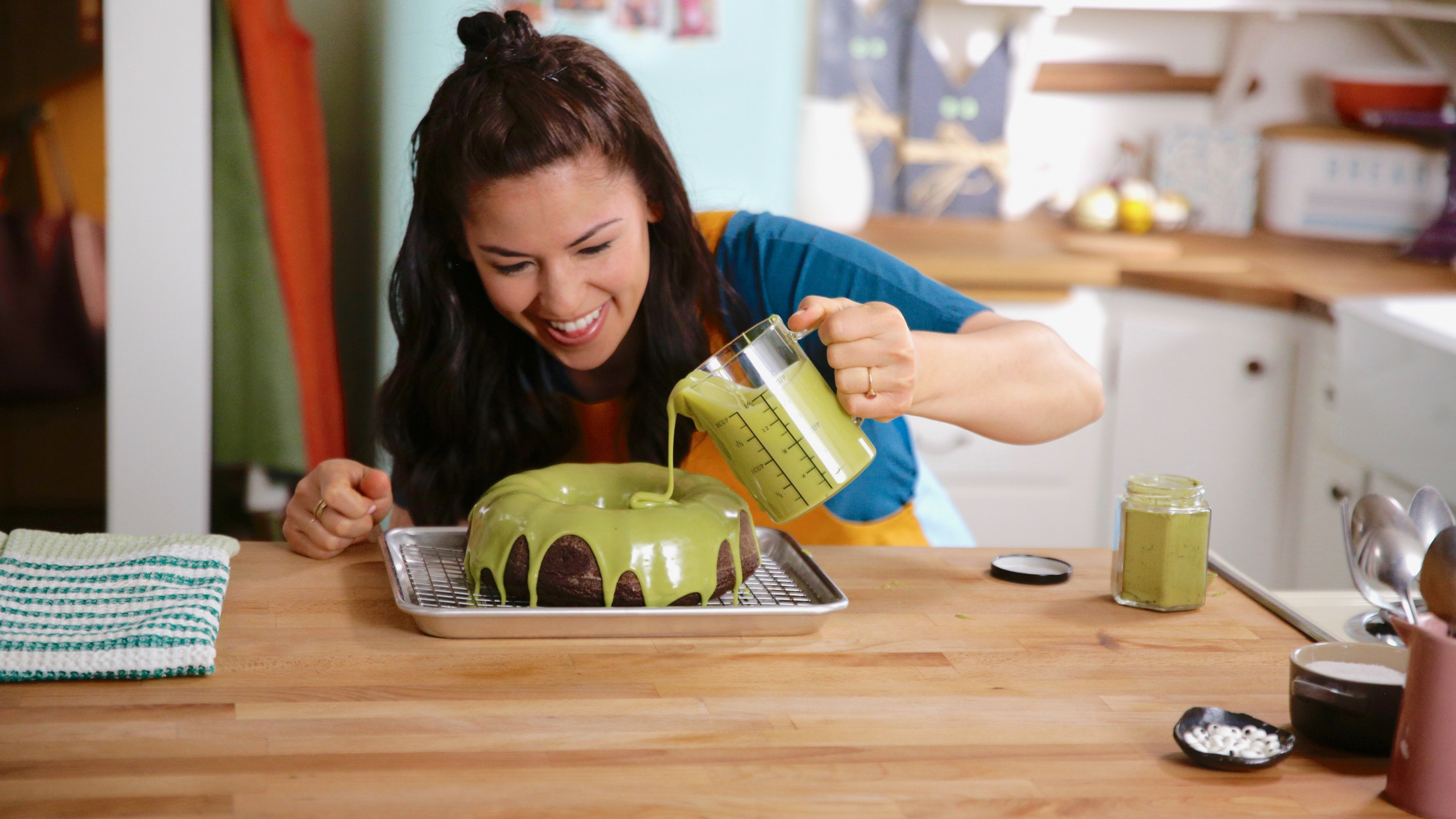Molly Yeh makes cosy dishes for her skating trio. On the menu are fried beef tacos, cheesy parmesan broccoli, and coffee cookie butter cones for dessert.