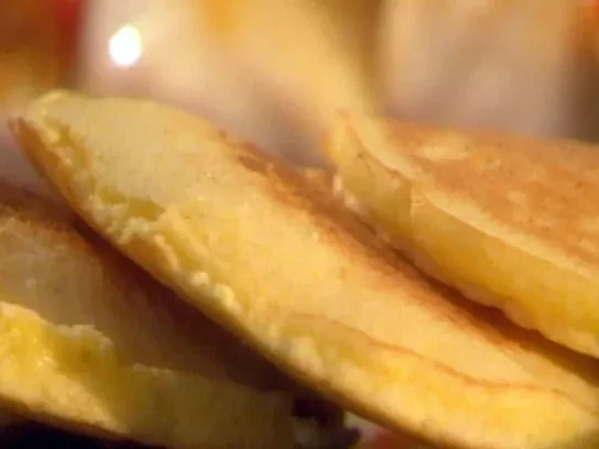 4) Pour 60ml batter onto griddle for each corn cake. Cook 2 minutes per side, until puffed up, golden brown and cooked through.
